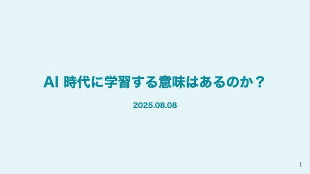 AI 時代に学習する意味はあるのか? 2025.08.08 1