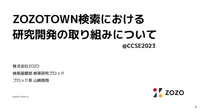 ZOZOTOWN検索における 研究開発の取り組みについて 株式会社ZOZO 検索基盤部 検索研究ブロック ブロック長 山﨑朋哉 Copyright © ZOZO,