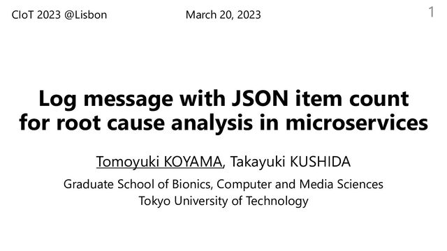 in microservices Tomoyuki KOYAMA, Takayuki KUSHIDA Graduate School of Bionics, Computer and Media Sciences Tokyo University of Technology March 20, 2023 1 CIoT 2023 @Lisbon