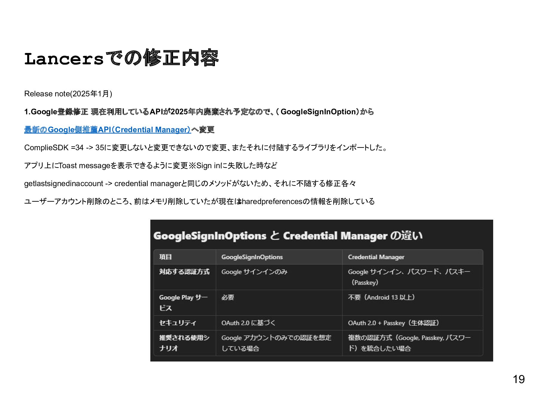 に参加する 2/14 • クラウドワークスでチューターを探す (7回くらい受けて3萬円) • ChatGPTの方が正確なアドバイスをくれる事に気付く • Android StudioでFirebaseでGoogleログインを実装する • (Sha-1 Fingerprint追加) • UsageStatsManagerを使ってアプリのログを取得してみる • アプリ面の開発というよりかは、精神面やアクセラレータープログラム 時間の使い方やブレストとして利用していました • 宅建の勉強の向き合い方が一番勉強になりました • TechMentor隔週プランに1カ月だけ通う(月39,800円) • プログラミングのスキルはめっちゃついた • 次回は10万円の出費になりそうになりそう: 入会金5万円、隔週メンタリングプラン 月39,800 (税込43,780) • アウトプットしたい意欲が出てくる • システムエンジニアに助けてほしい(他力本願) • 一人でプログラミングするのが嫌になってくる 9/2 12/17 LT#1