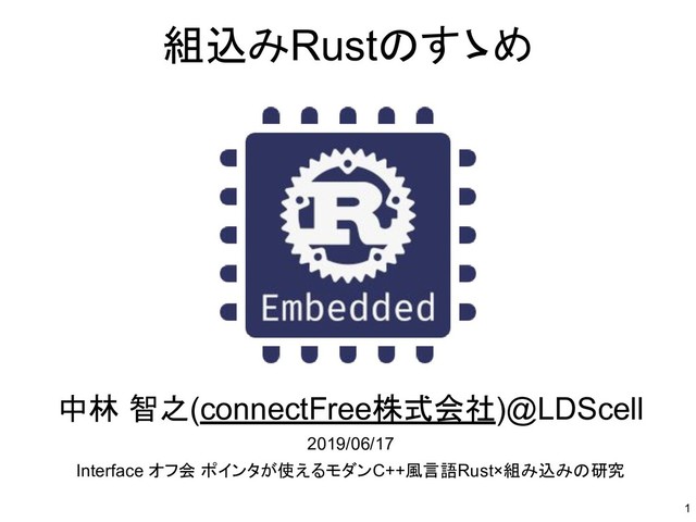組込みRustのすゝめ 中林 智之(connectFree株式会社)@LDScell 2019/06/17 Interface オフ会 ポインタが使えるモダンC++風言語Rust×組み込みの研究 1
