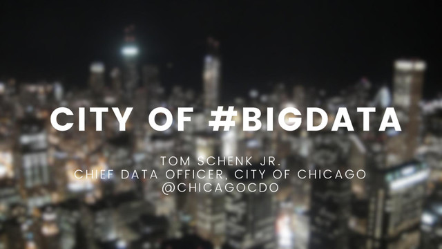 Officer City of Chicago @ChicagoCDO [email protected] data.cityofchicago.org digital.cityofchicago.org opengrid.io techplan.cityofchicago.org speakerdeck.com/tomschenkjr