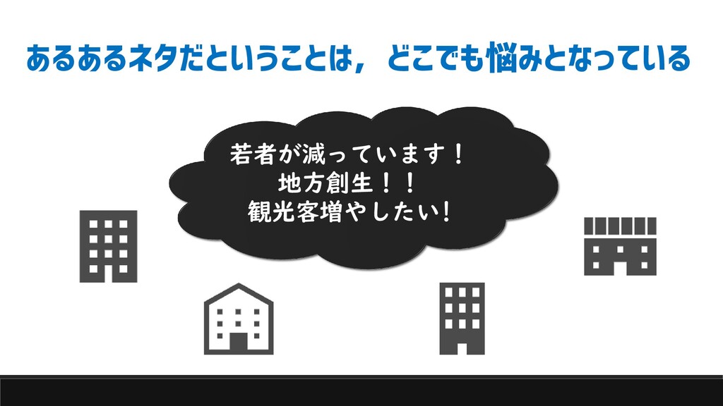 あるあるネタだということは,どこでも悩みとなっている 若者が減っています! 地方創生!! 観光客増やしたい!
