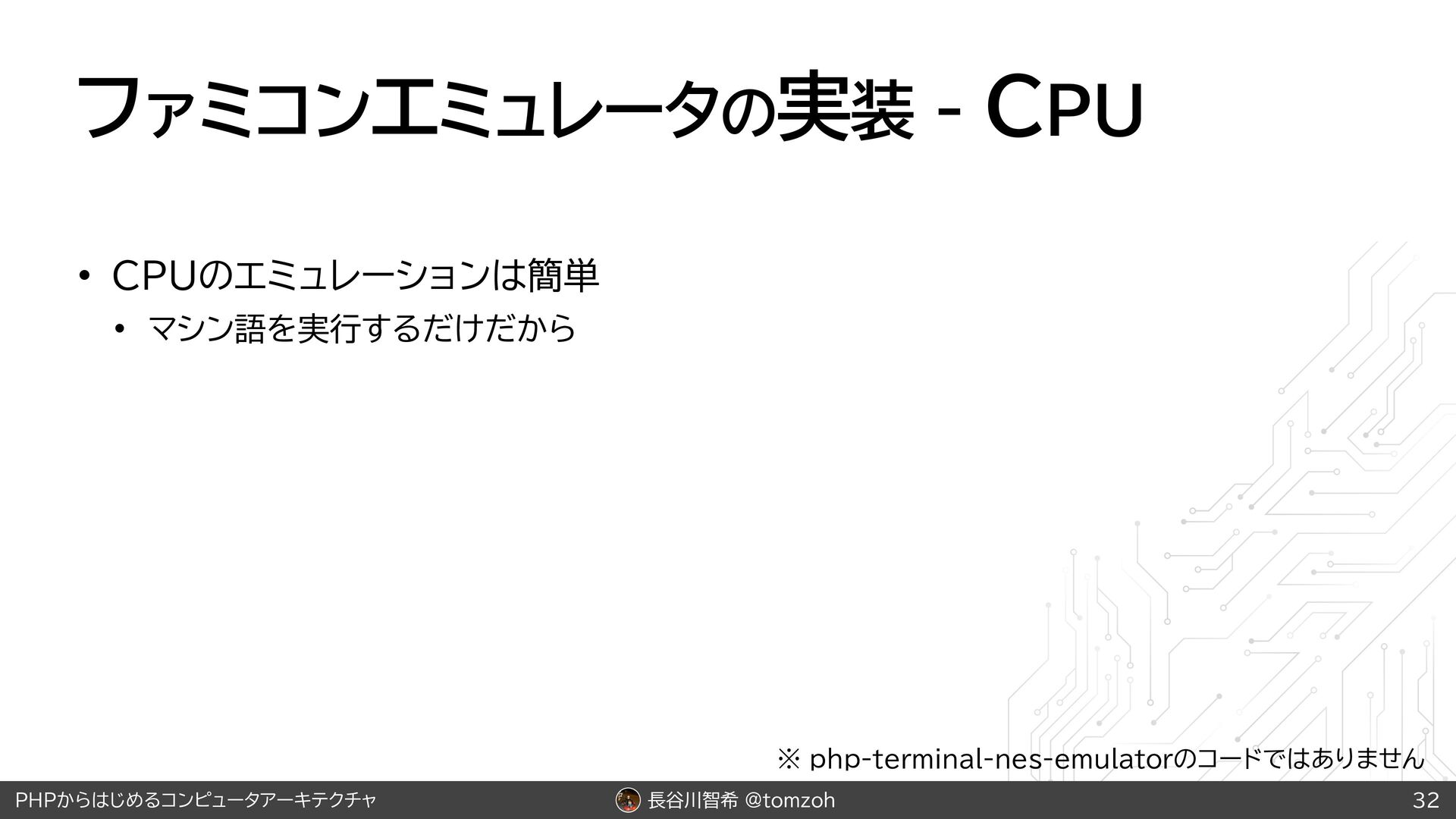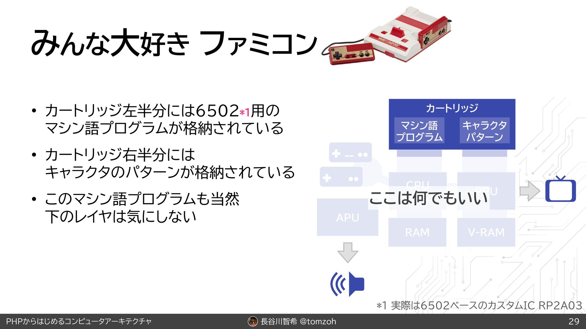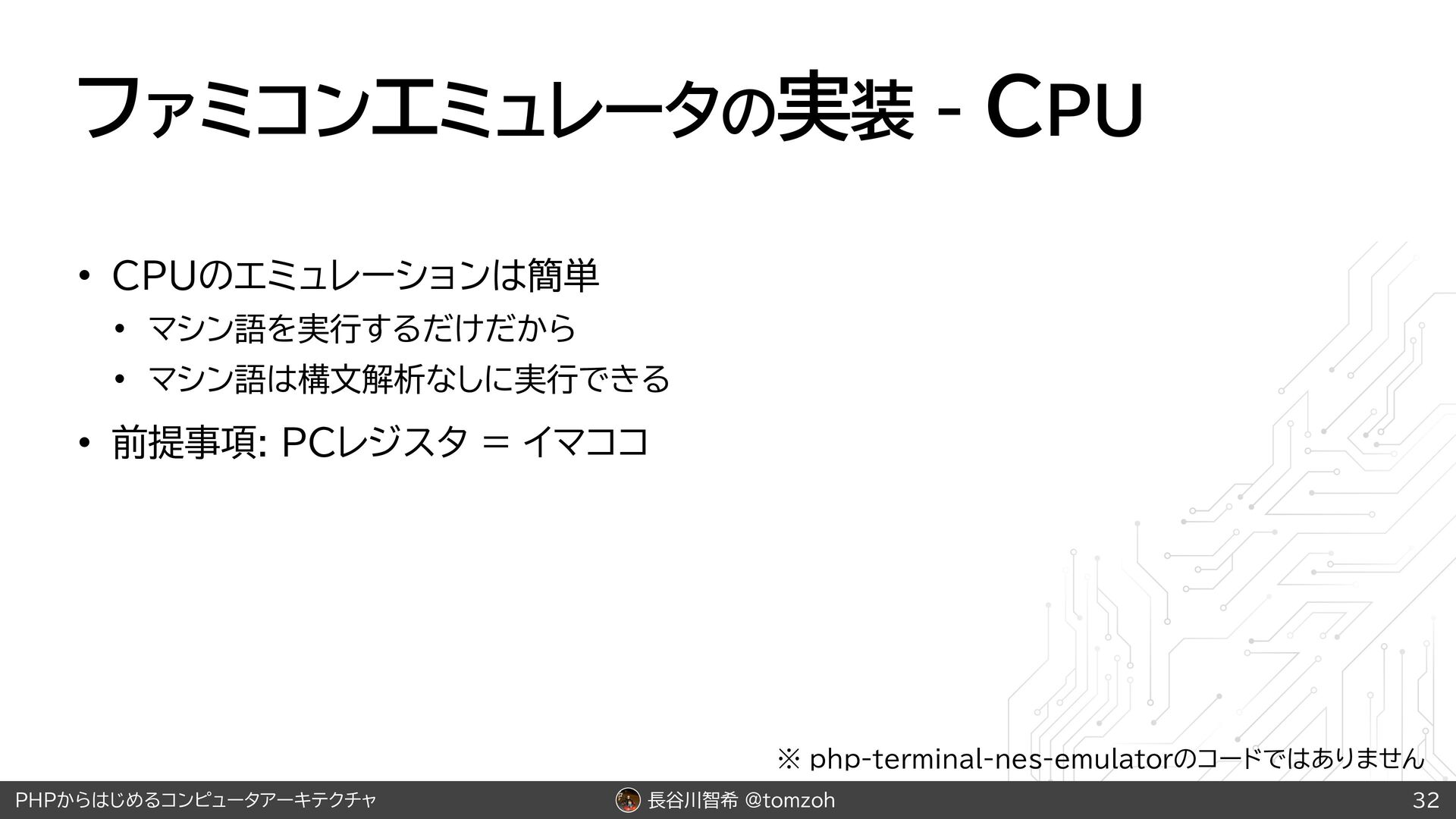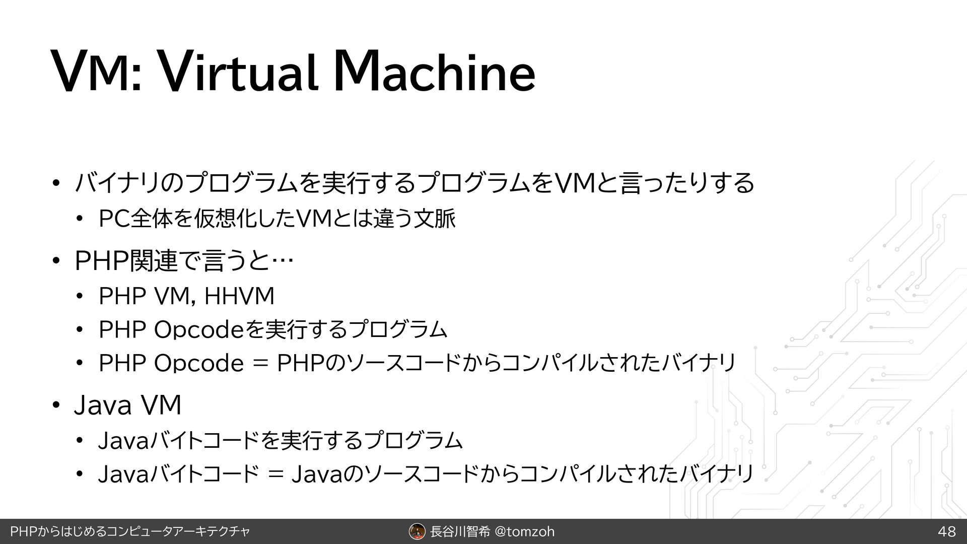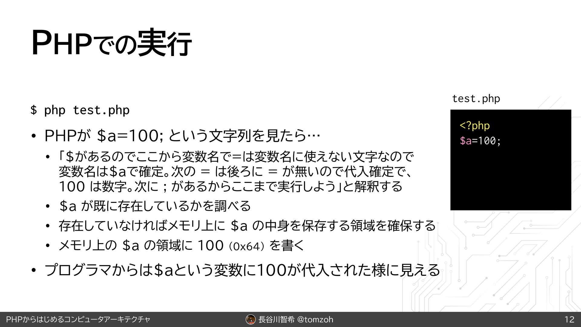 → マシン語(バイナリ) CPUで実行 $ ./hello-world 55 #include <stdio.h> int main(void){ printf("Hello, world."); } hello-world.c .LC0: .string "Hello, world." : main: endbr64 pushq %rbp movq %rsp, %rbp leaq .LC0(%rip), %rdi movl $0, %eax call printf@PLT movl $0, %eax : hello-world.s 00000000 7f 45 4c 46 02 01 01 00 00 00 00 00 00 00 00 00 |.ELF............| 00000010 03 00 3e 00 01 00 00 00 60 10 00 00 00 00 00 00 |..>.....`.......| 00000020 40 00 00 00 00 00 00 00 80 39 00 00 00 00 00 00 |@........9......| : hello-world