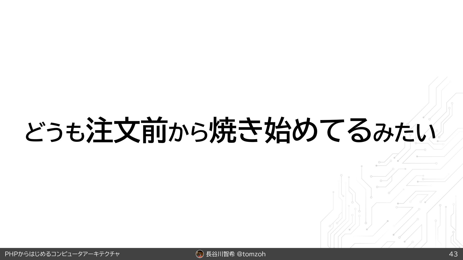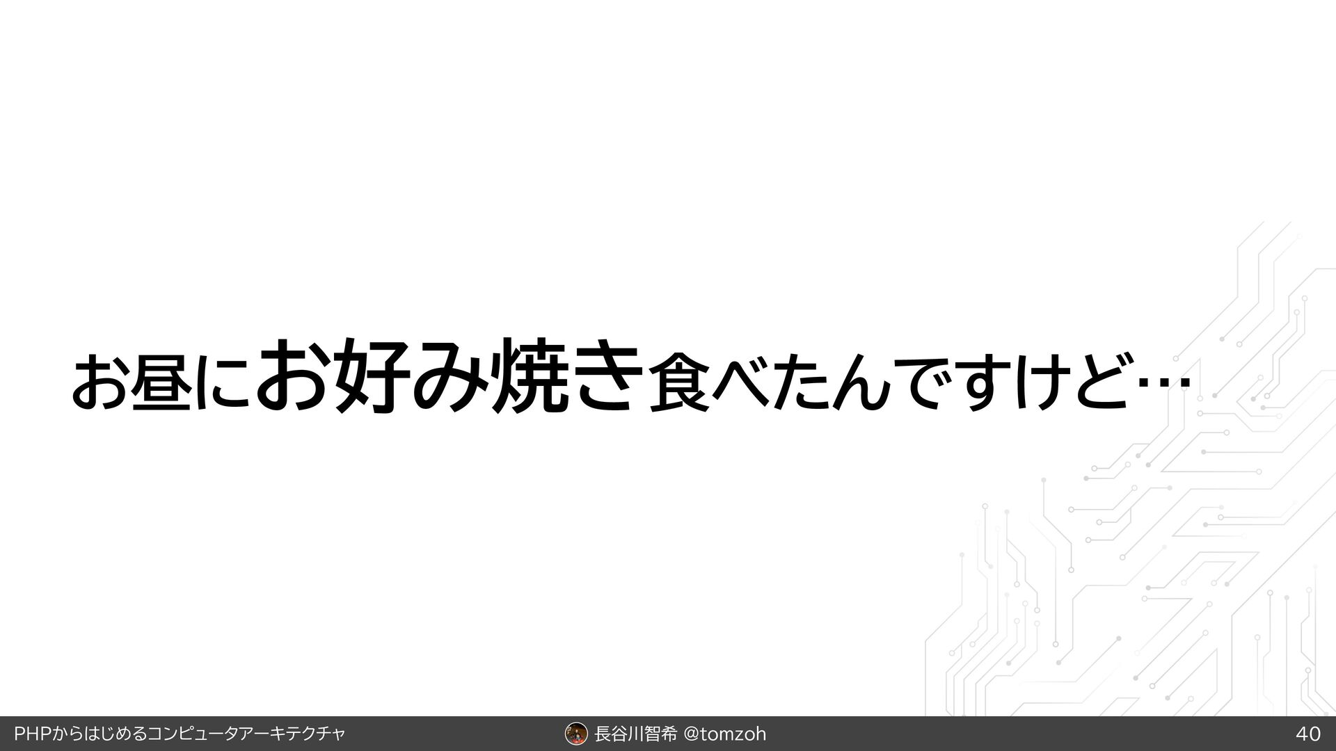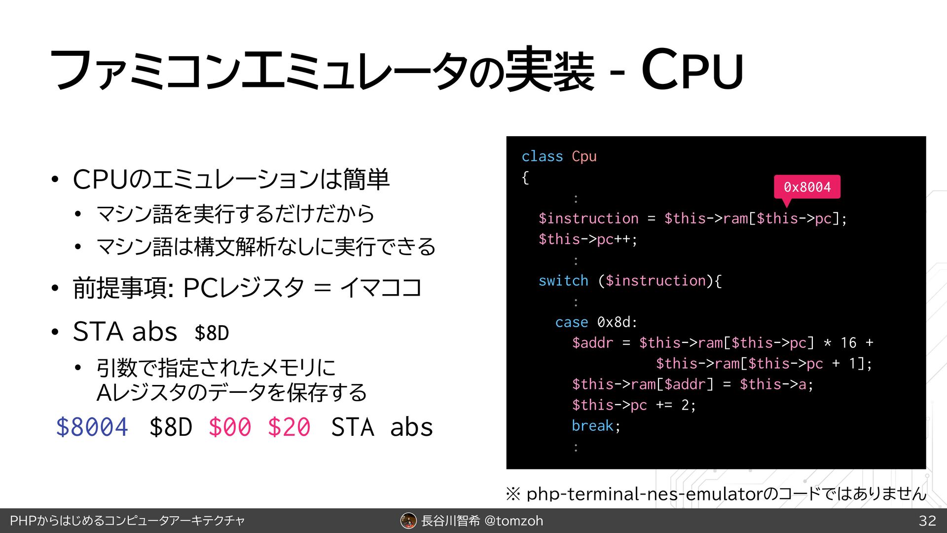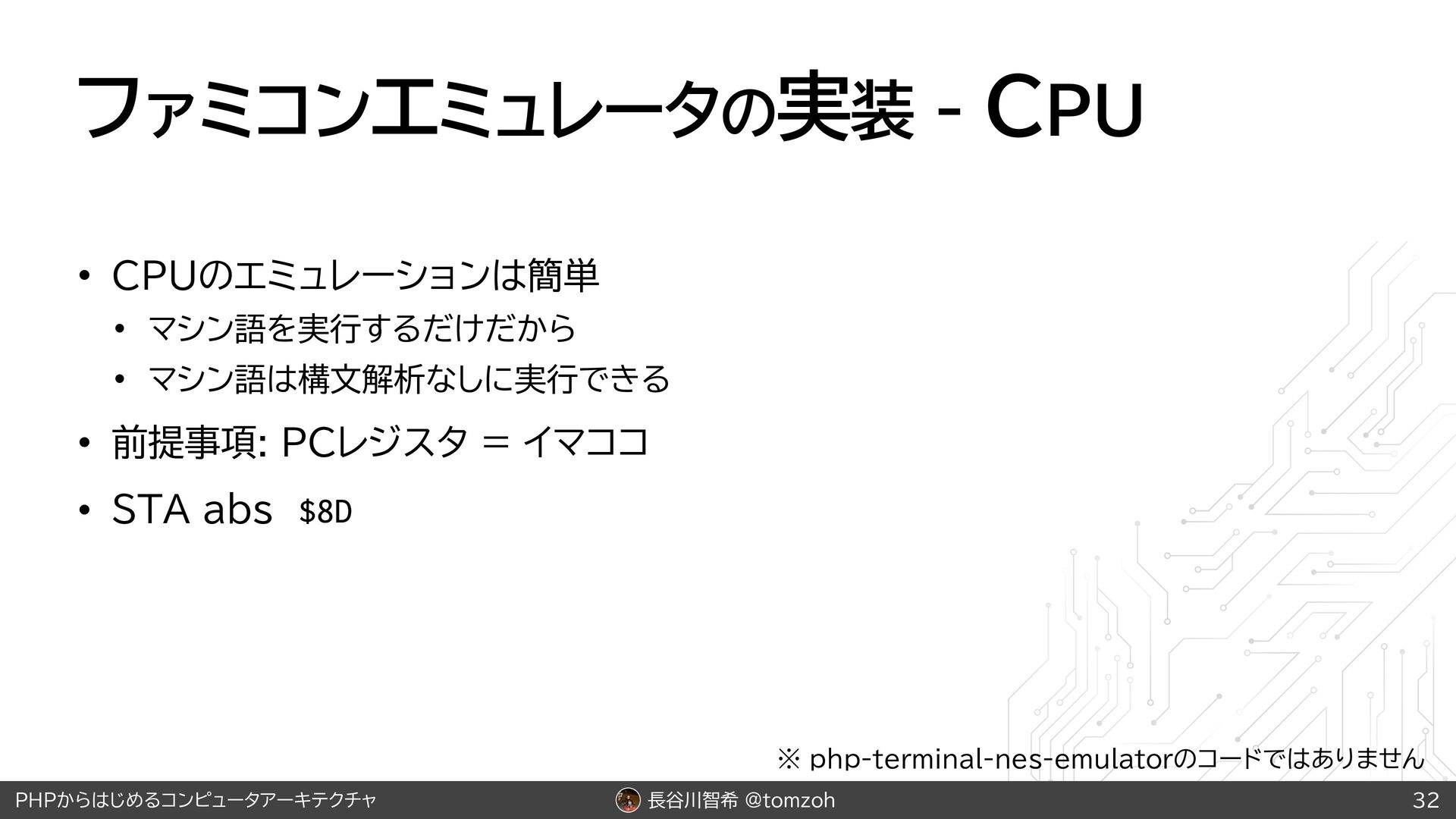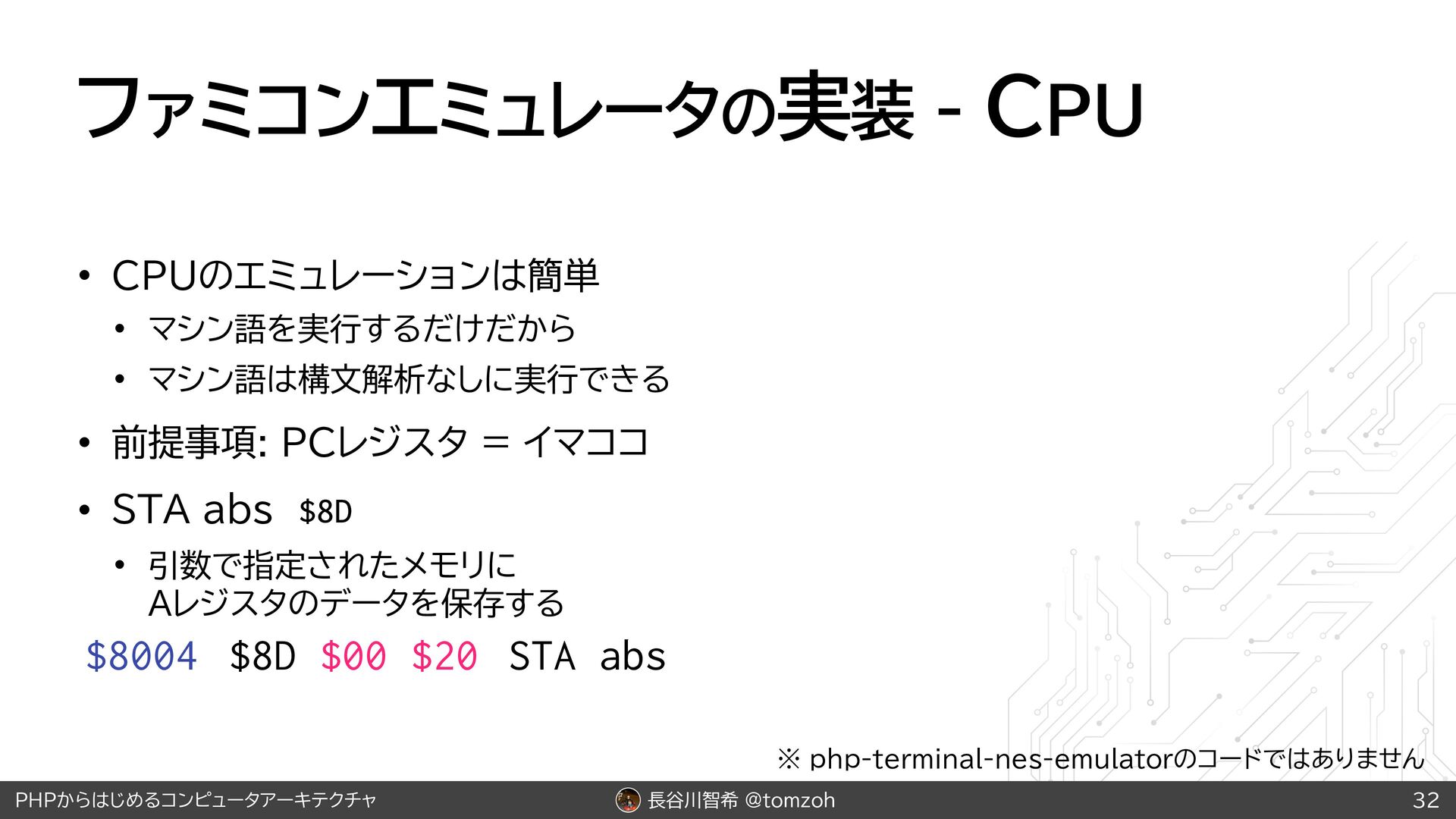 → マシン語(バイナリ) CPUで実行 $ ./hello-world 55 #include <stdio.h> int main(void){ printf("Hello, world."); } hello-world.c .LC0: .string "Hello, world." : main: endbr64 pushq %rbp movq %rsp, %rbp leaq .LC0(%rip), %rdi movl $0, %eax call printf@PLT movl $0, %eax : hello-world.s 00000000 7f 45 4c 46 02 01 01 00 00 00 00 00 00 00 00 00 |.ELF............| 00000010 03 00 3e 00 01 00 00 00 60 10 00 00 00 00 00 00 |..>.....`.......| 00000020 40 00 00 00 00 00 00 00 80 39 00 00 00 00 00 00 |@........9......| : hello-world