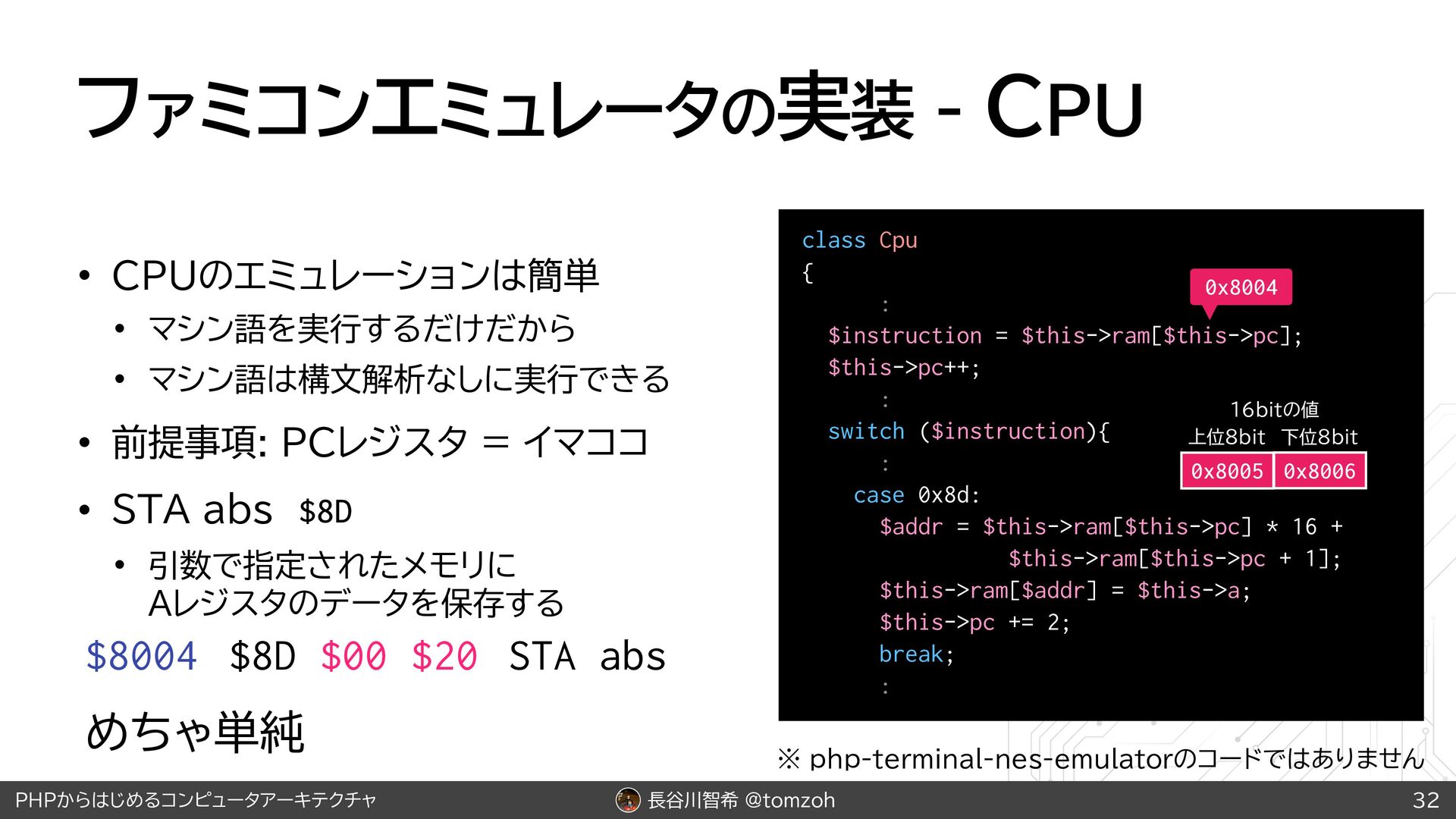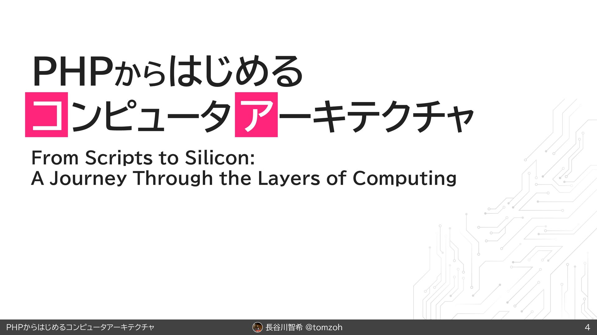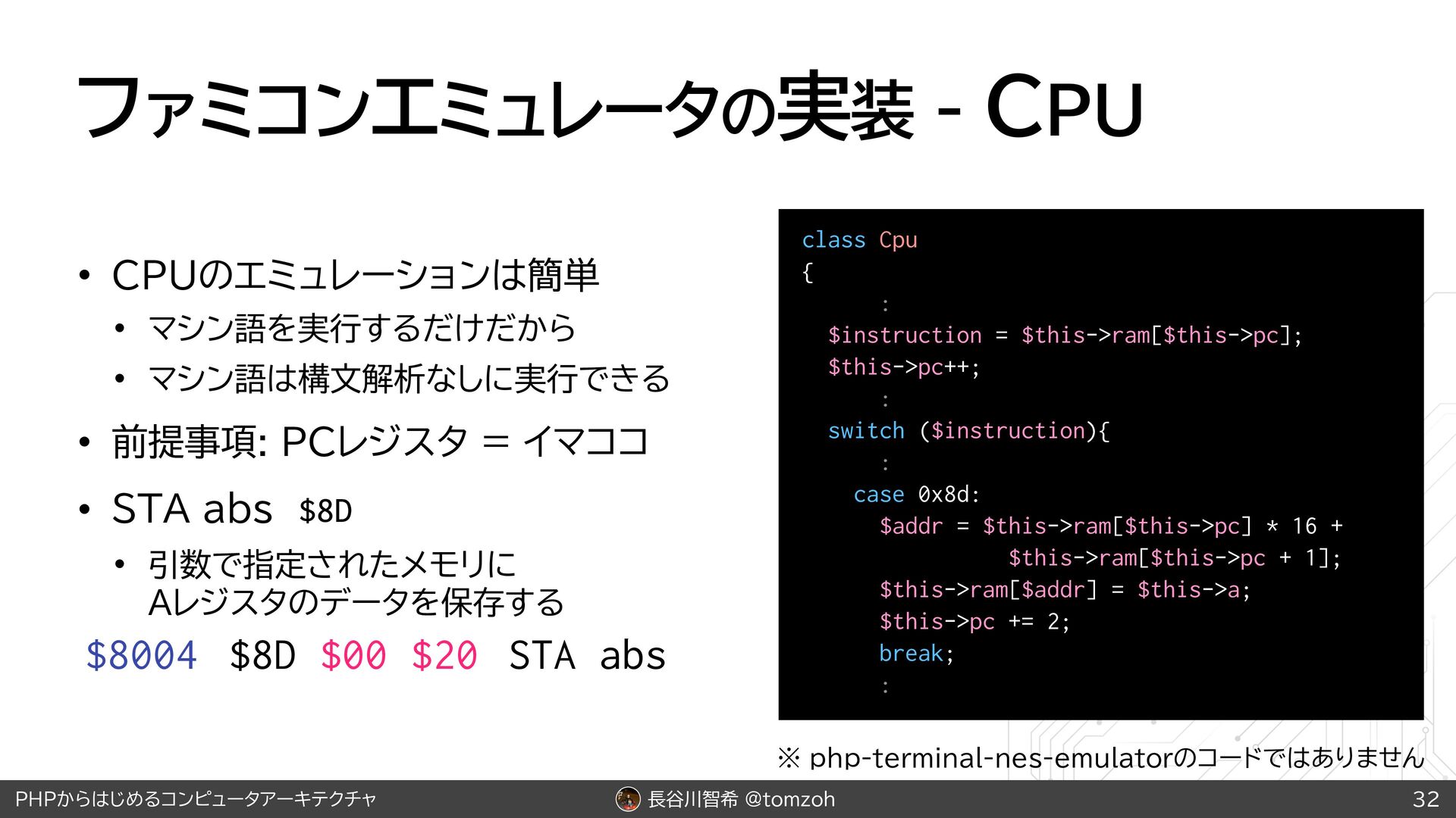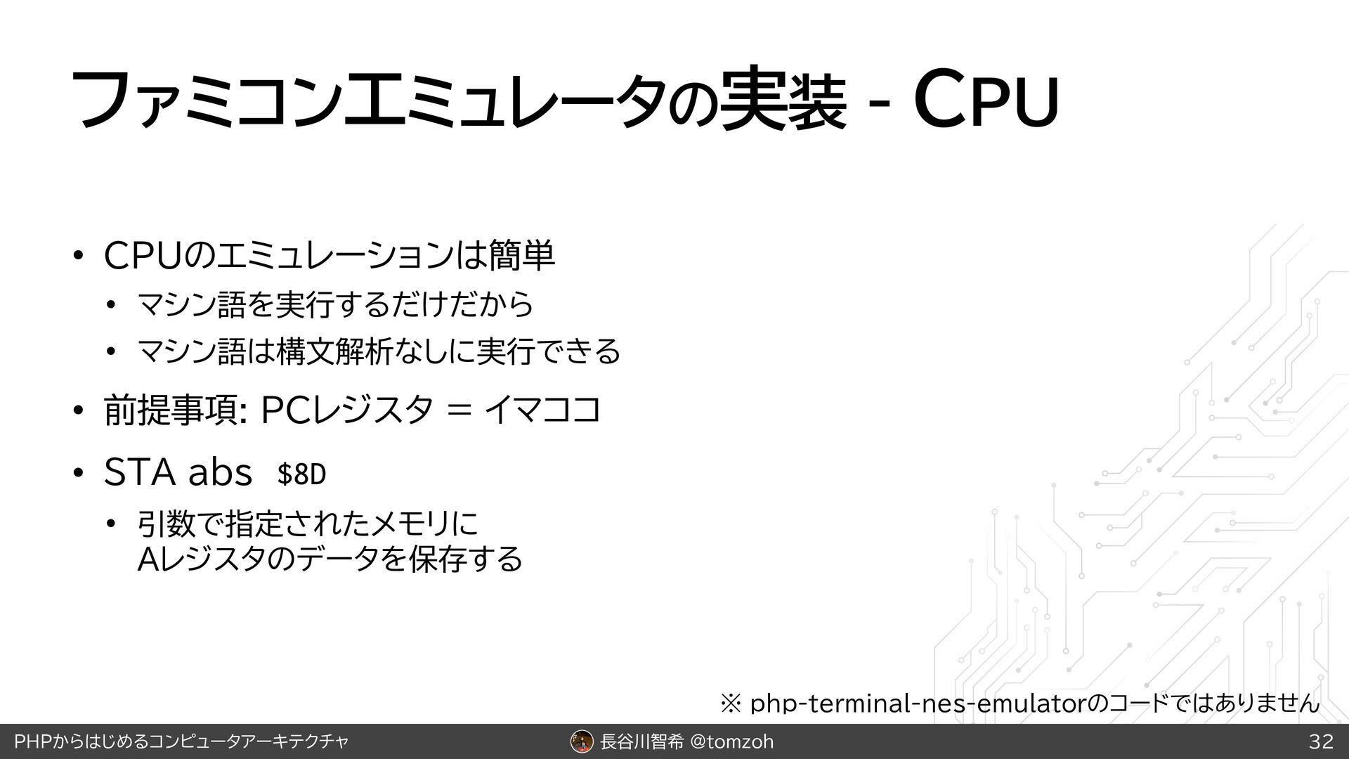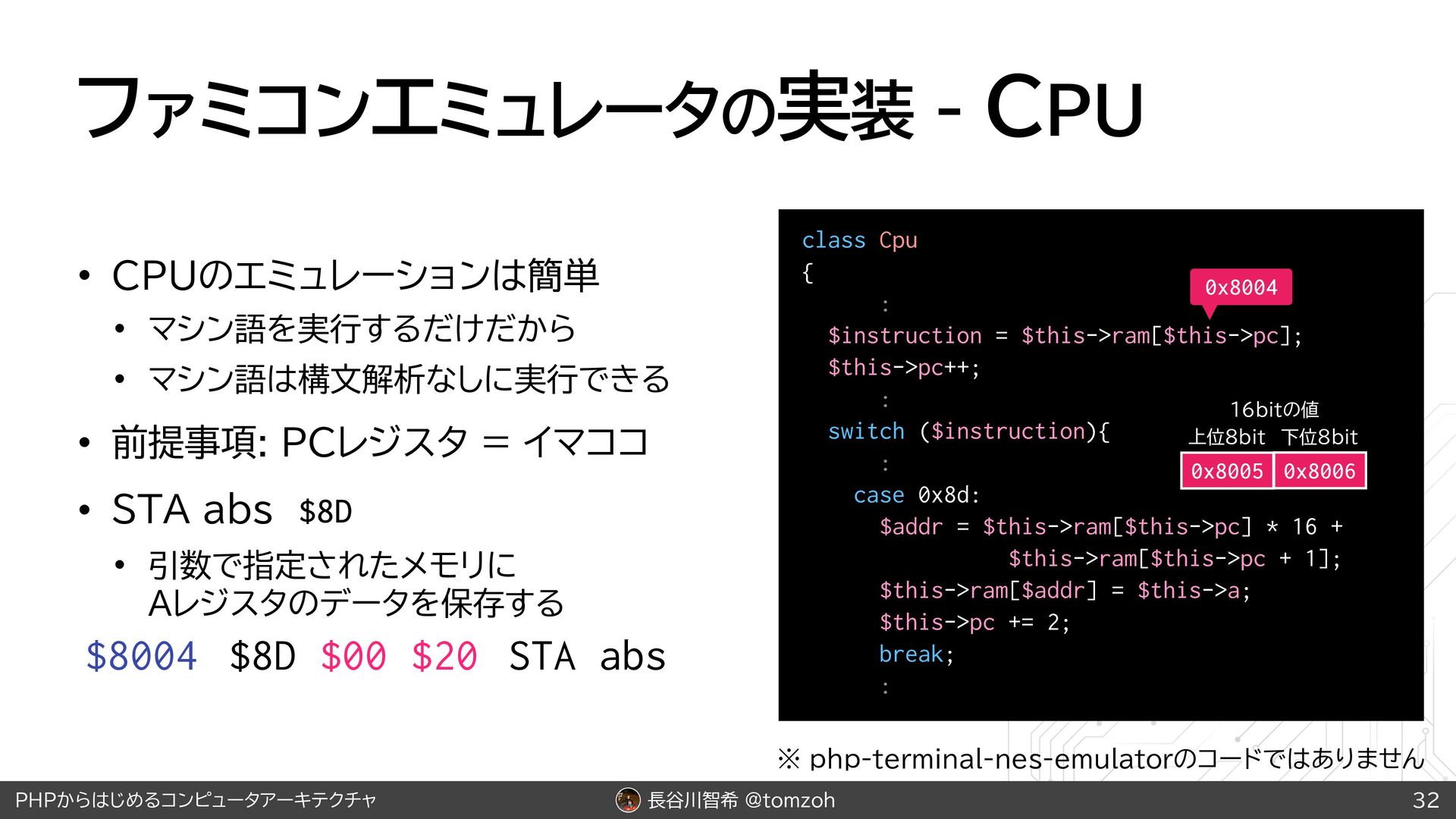→ マシン語(バイナリ) CPUで実行 $ ./hello-world 55 #include <stdio.h> int main(void){ printf("Hello, world."); } hello-world.c .LC0: .string "Hello, world." : main: endbr64 pushq %rbp movq %rsp, %rbp leaq .LC0(%rip), %rdi movl $0, %eax call printf@PLT movl $0, %eax : hello-world.s 00000000 7f 45 4c 46 02 01 01 00 00 00 00 00 00 00 00 00 |.ELF............| 00000010 03 00 3e 00 01 00 00 00 60 10 00 00 00 00 00 00 |..>.....`.......| 00000020 40 00 00 00 00 00 00 00 80 39 00 00 00 00 00 00 |@........9......| : hello-world