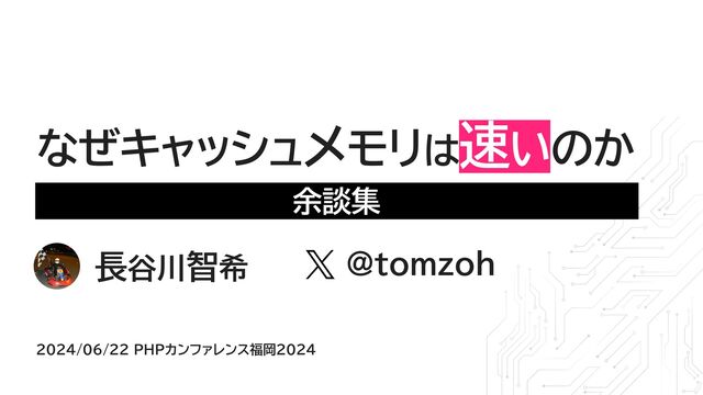 PHPカンファレンス福岡2024のアンカンファレンスで使った資料です。 本編 https://speakerdeck.com/tomzoh/why-is-cache-memory-so-fast の「おまけ」部分の増補改訂版です。