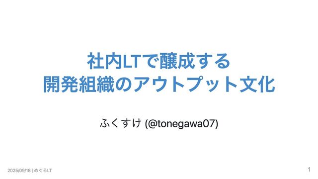 社内LTで醸成する 開発組織のアウトプット文化 ふくすけ (@tonegawa07) 2025/09/18 | めぐろLT 1
