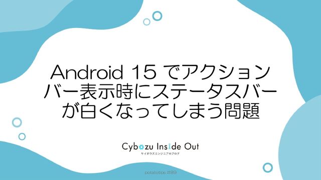 ViewCompat.setOnApplyWindowInsetsListener(findViewById(R.id.root_view)) { view, windowInsets -> val insets = windowInsets.getInsets(WindowInsetsCompat.Type.systemBars()) view.setPadding(insets.left, insets.top, insets.right, insets.bottom) WindowInsetsCompat.CONSUMED } // Android 14以下でもEdge-to-edgeにする(任意) enableEdgeToEdge( statusBarStyle = SystemBarStyle.dark(Color.TRANSPARENT), navigationBarStyle = SystemBarStyle.dark(Color.TRANSPARENT) ) } potatotips #89 7