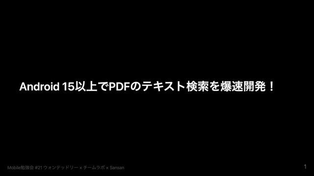 = ""): OpenedPage { return withContext(Dispatchers.IO) { openPage(pageNumber).use { page -> val scale = 2f val bitmap = createBitmap(page.width * scale.toInt(), page.height * scale.toInt()) val matrix = Matrix().apply { postScale(scale, scale) } page.render(bitmap, null, matrix, PdfRenderer.Page.RENDER_MODE_FOR_DISPLAY) val matchedList = if ( Build.VERSION.SDK_INT >= Build.VERSION_CODES.VANILLA_ICE_CREAM && searchText.isNotEmpty() ) { val tmpMatchedList = page.searchText(searchText) tmpMatchedList.map { matched -> matched.bounds.map { bound -> bound.applyScale(scale) val canvas = Canvas(bitmap.asImageBitmap()) val paint = Paint().apply { color = Color(255, 255, 0, 127) } canvas.drawRect(bound.left, bound.top, bound.right, bound.bottom, paint) } } tmpMatchedList } else { emptyList() } OpenedPage( imageBitmap = bitmap.asImageBitmap().apply { prepareToDraw() }, matchedCount = matchedList.size ) } } } private data class OpenedPage( val imageBitmap: ImageBitmap, val matchedCount: Int, ) Mobile勉強会 #21 ウォンテッドリー × チームラボ × Sansan 8