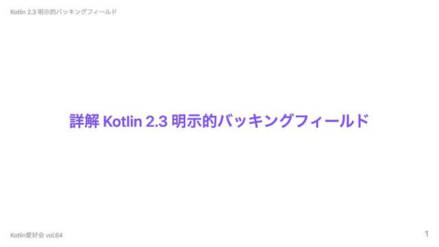 詳解 Kotlin 2.3 明示的バッキングフィールド Kotlin 2.3 明示的バッキングフィールド Kotlin愛好会 vol.64 1