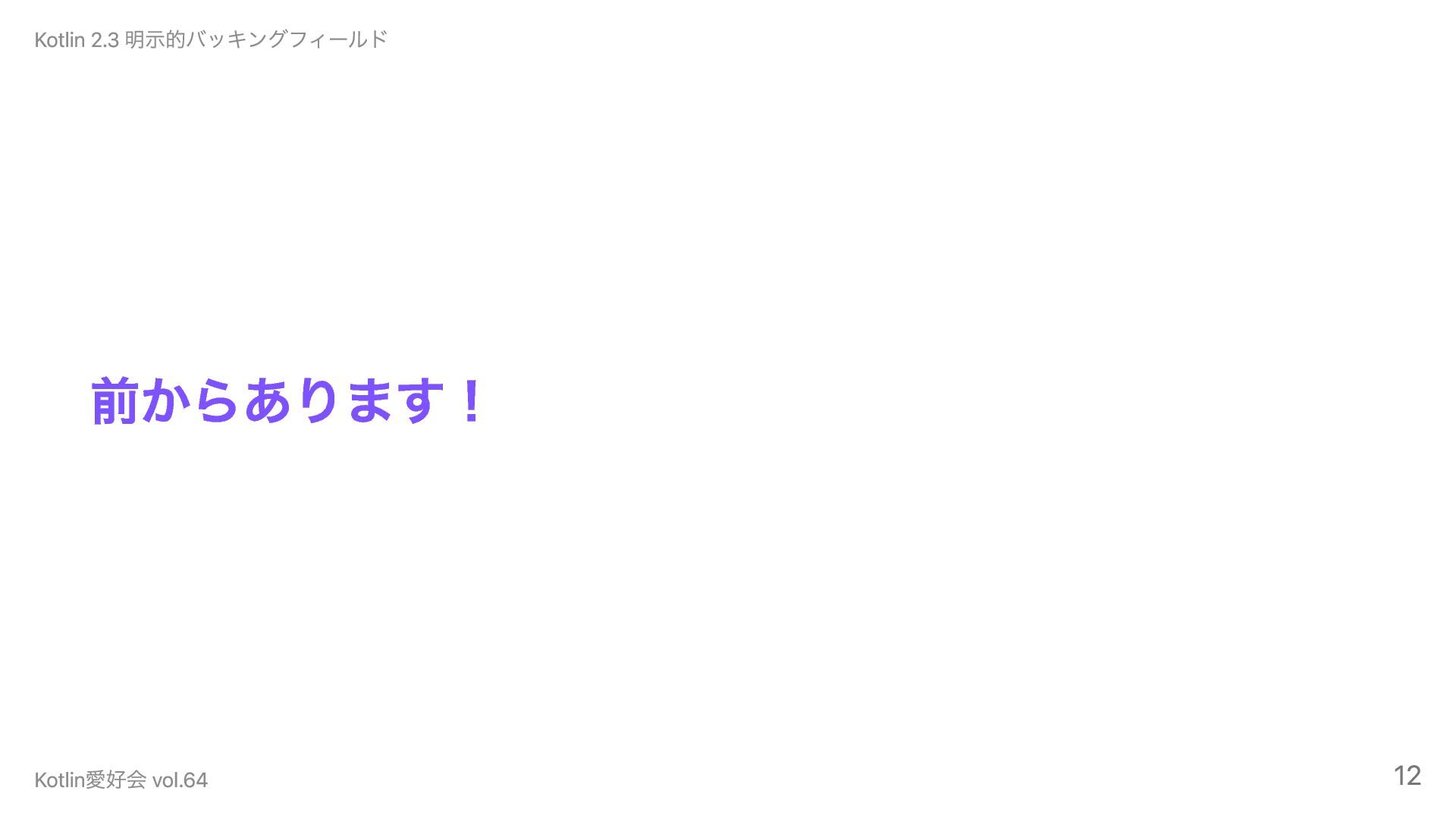 前からあります! Kotlin 2.3 明示的バッキングフィールド Kotlin愛好会 vol.64 12