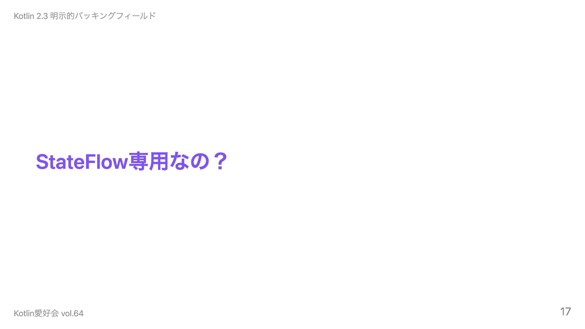StateFlow専用なの? Kotlin 2.3 明示的バッキングフィールド Kotlin愛好会 vol.64 17