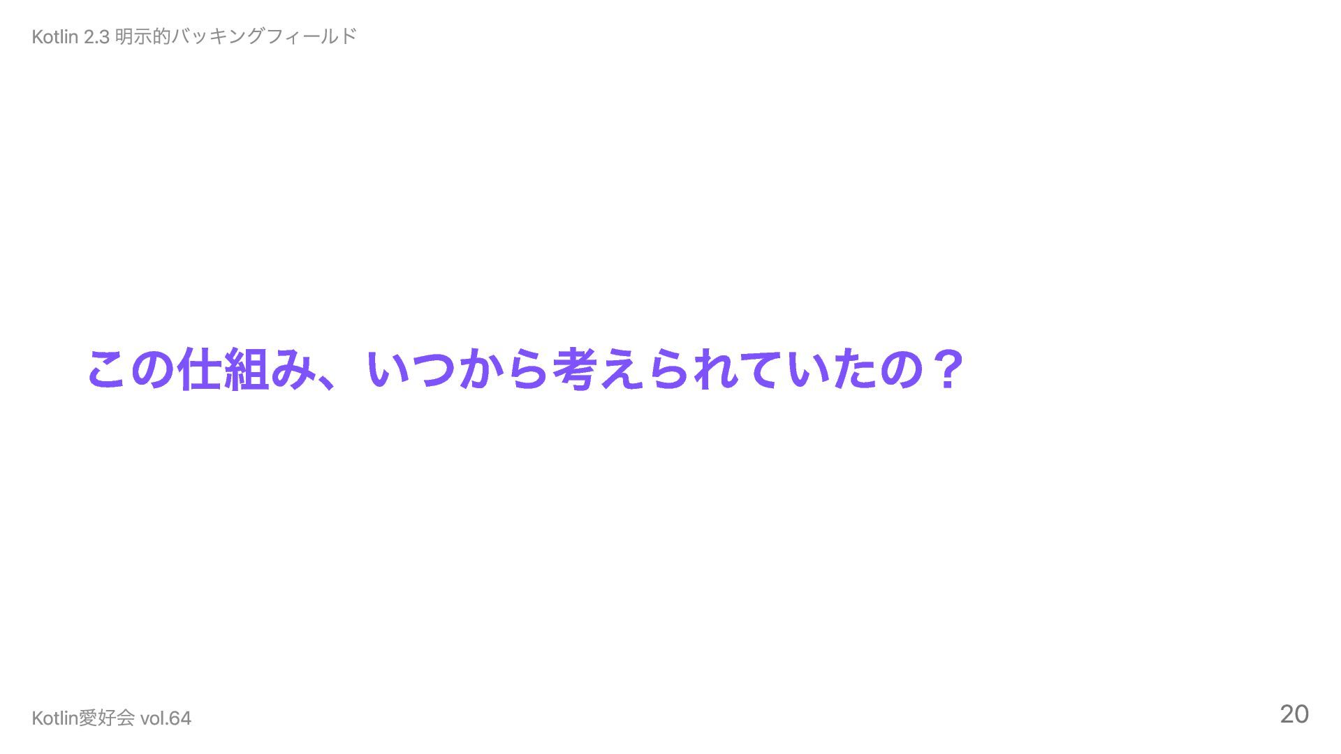 この仕組み、いつから考えられていたの? Kotlin 2.3 明示的バッキングフィールド Kotlin愛好会 vol.64 20