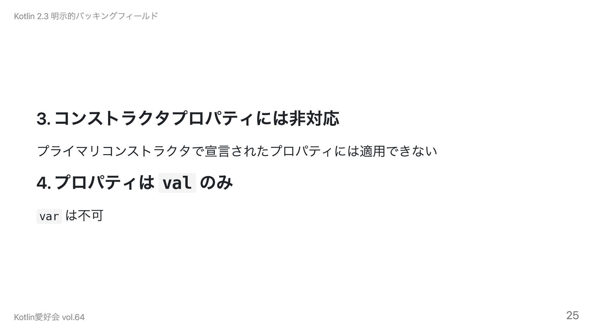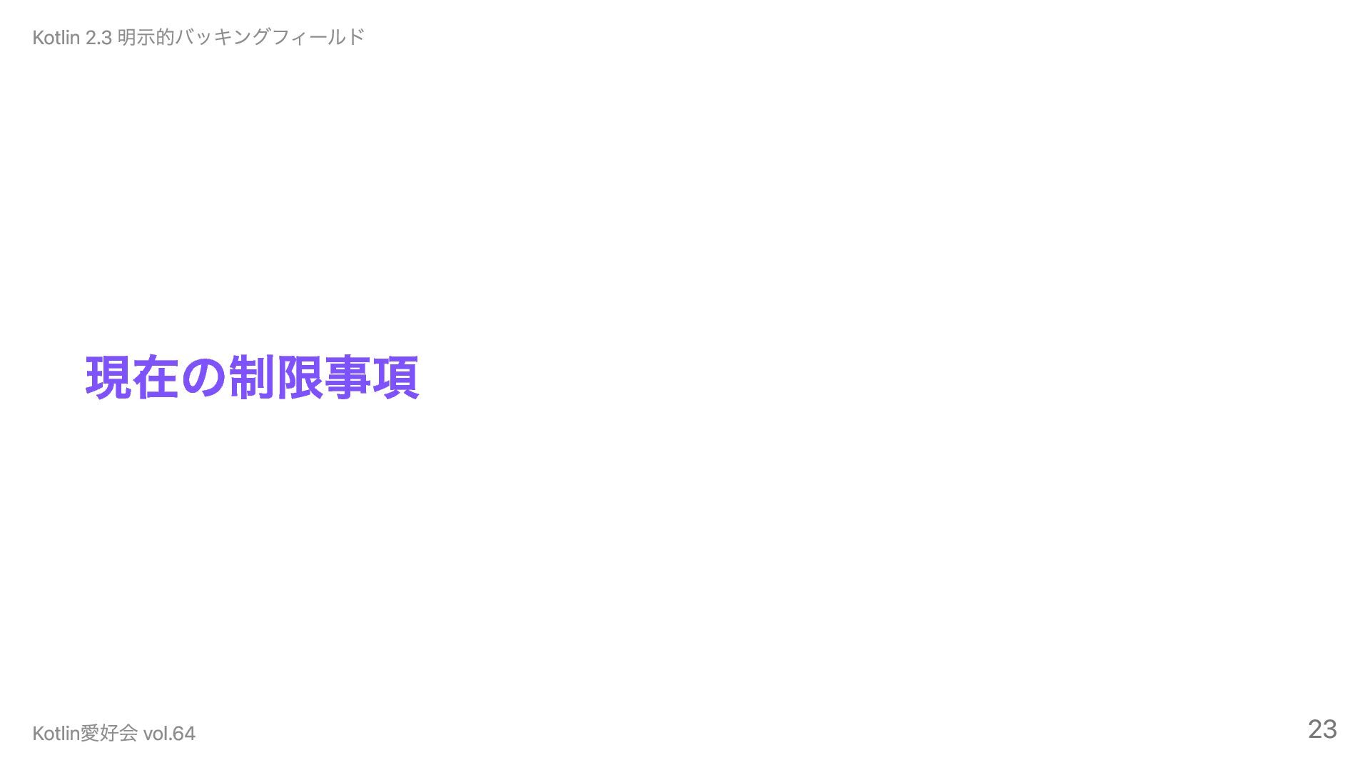 現在の制限事項 Kotlin 2.3 明示的バッキングフィールド Kotlin愛好会 vol.64 23