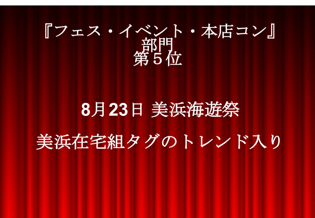 8月23日 美浜海遊祭 美浜在宅組タグのトレンド入り 『フェス・イベント・本店コン』 部門 第5位
