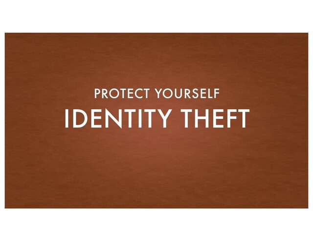 / recording credit card information from the magnetic stripe • Burglaries • Friends/Family • Shoulder surfing / Cell phone cameras • Fellow employees • Insider theft, rogue employees that steal or sell your information • Database hacking or accidental loss exposing personal data • Keystroke recording • Phishing and other email/phone scams • Purchase – Stolen information for sale on the ‘black market’