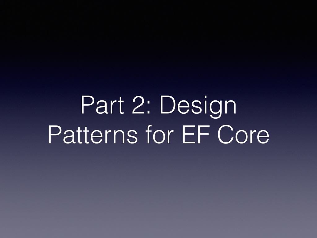 Compatible across all flavors of .NET • DbContext: .NET Core class library - EF Core CLI requires .NET Core • Web API: ASP.NET Core Project - Reference Entities and Data projects