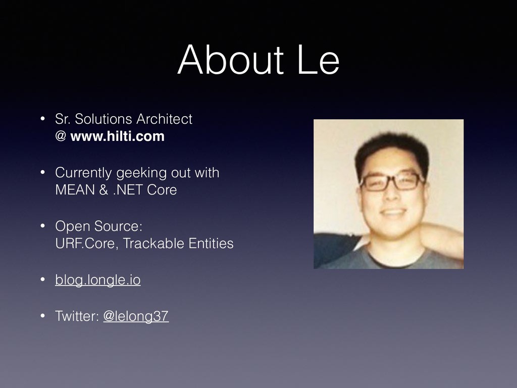 geeking out with MEAN & .NET Core • Open Source: URF.Core, Trackable Entities • blog.longle.io • Twitter: @lelong37