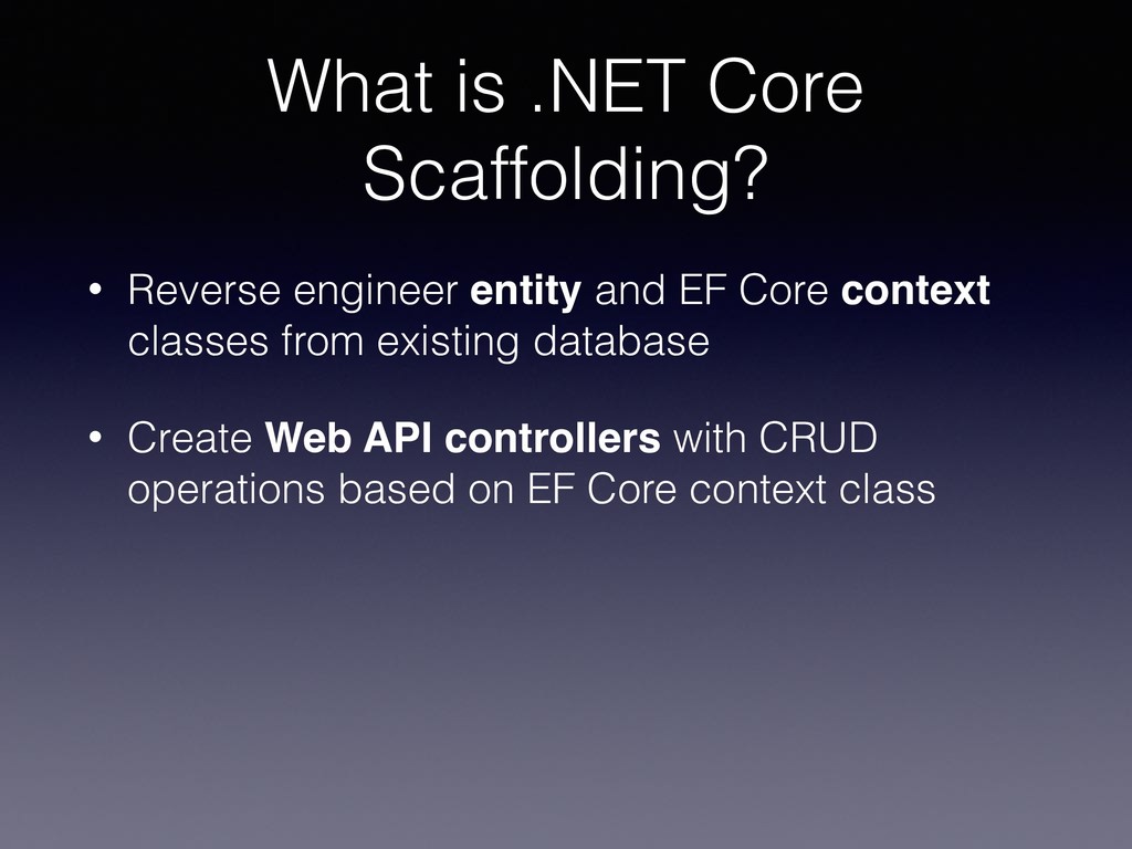 What is .NET Core Scaffolding? • Reverse engineer entity and