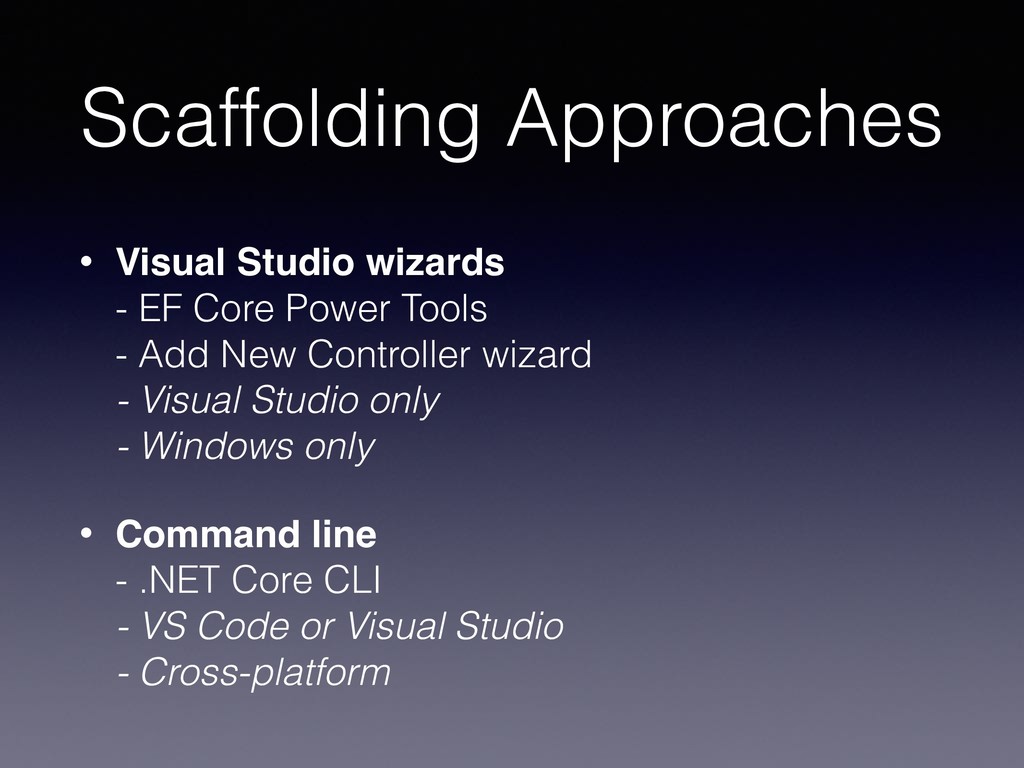 Scaffolding Approaches • Visual Studio wizards - EF Core Power