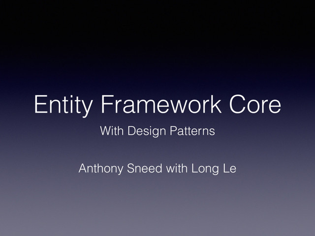 Thank You! Tony Sneed: @tonysneed Long Le: @lelong37 Slides: https://speakerdeck.com/tonysneed/ef-core-with-patterns