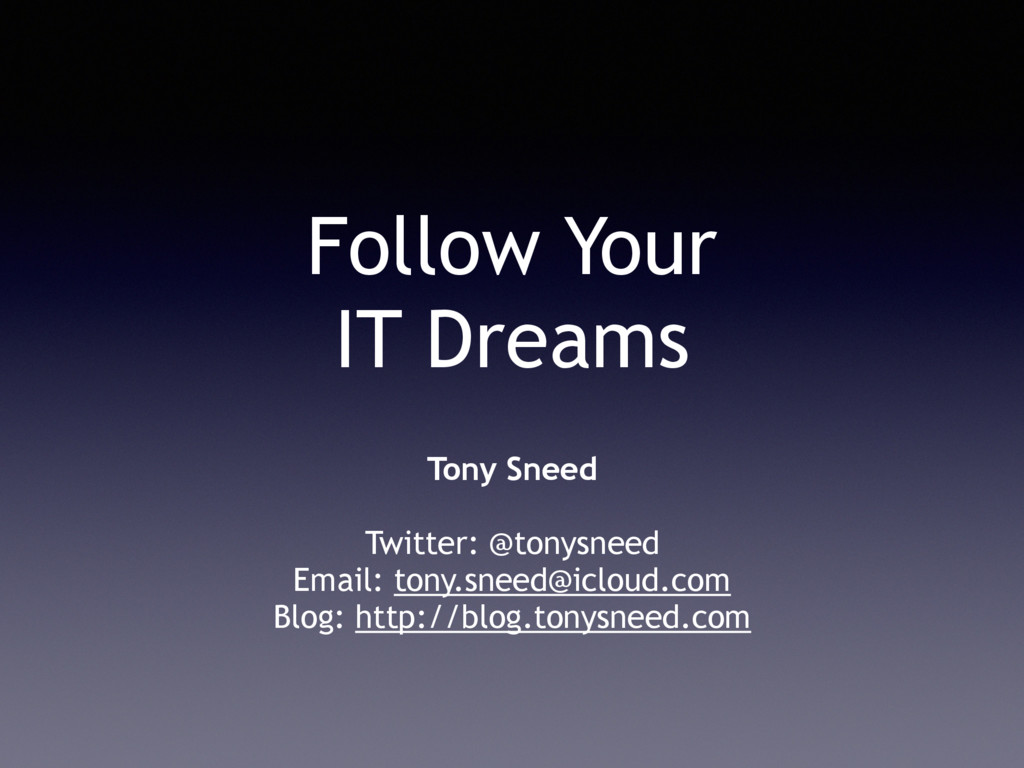 Follow Your IT Dreams Tony Sneed Twitter: @tonysneed Email: