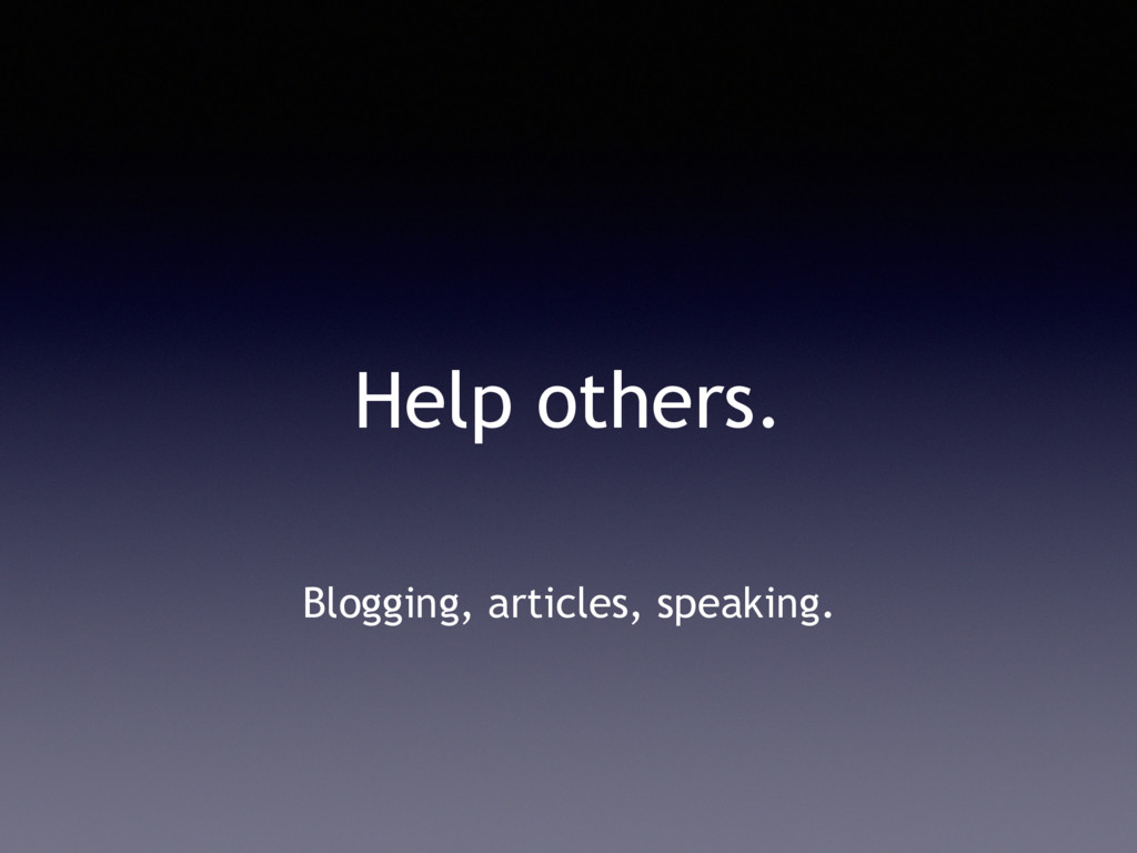 Help others. Blogging, articles, speaking.