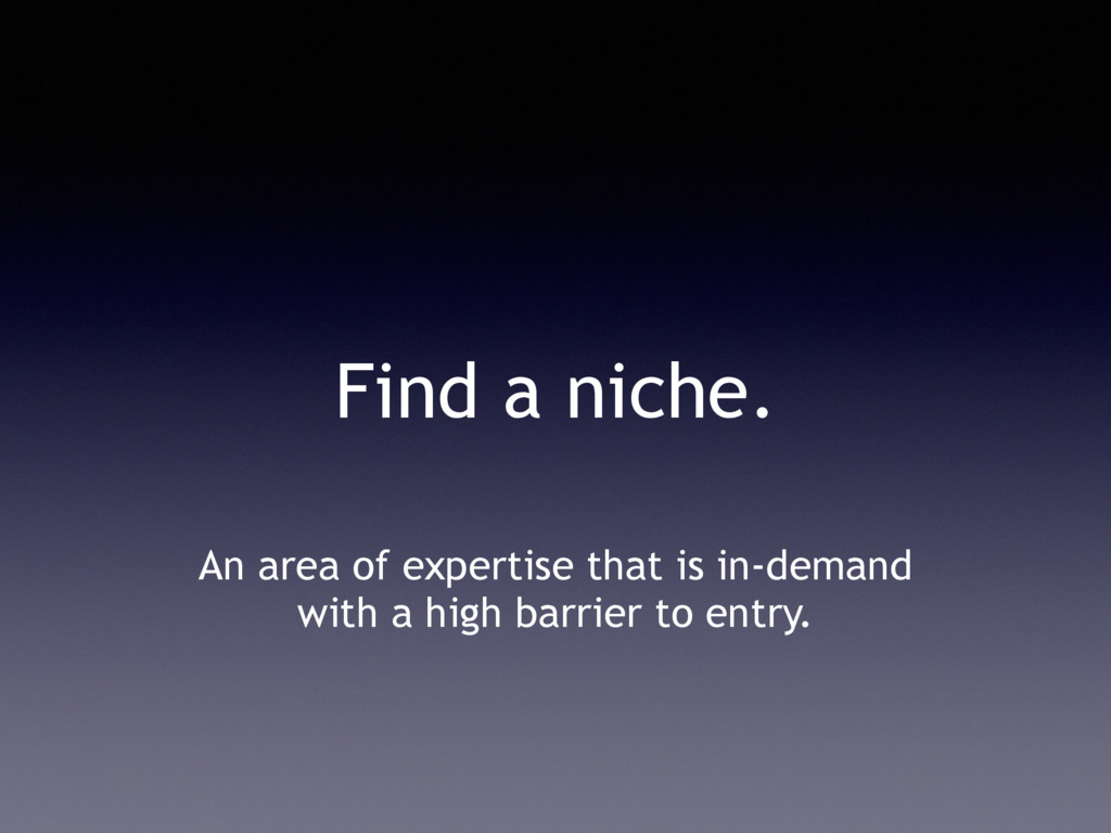 Find a niche. An area of expertise that is in-demand