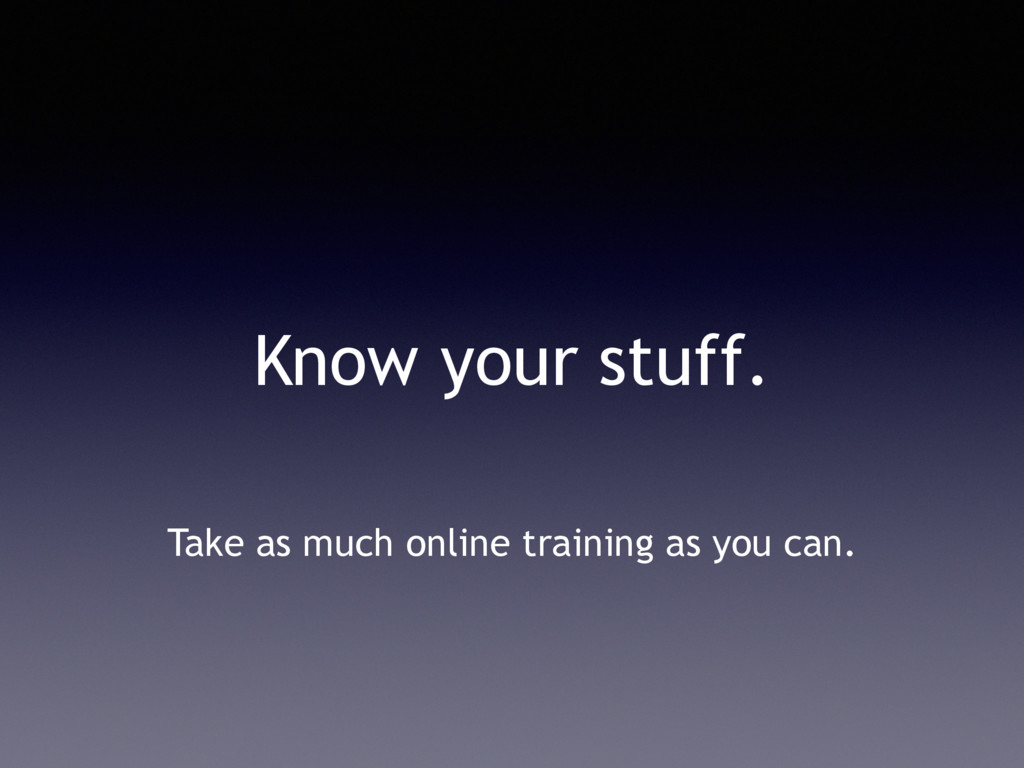 Know your stuff. Take as much online training as you