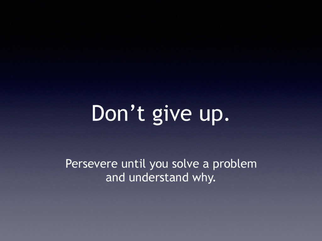 Don’t give up. Persevere until you solve a problem and