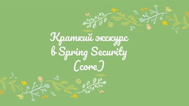 механизмов проверки ✢ Предоставляет средства работы с паролями ✢ Основные классы: ◦ Authentication, AuthenticationManager ◦ SecurityContext, SecurityContextHolder ◦ UserDetails, UserDetailsService