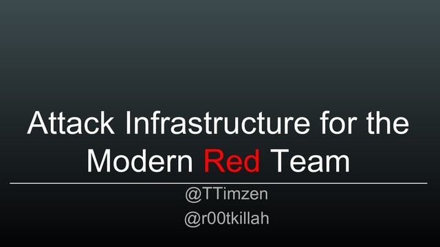 While active hacking is the sexy part of red teaming, everybody knows that there is a lot of unsexy prep work prior to an engagement. A robust attack infrastructure is a complicated, yet critical, part of that prep work. . As Red Teams continue to grow in maturity, a successful engagement relies on infrastructure that is suitable for covert activities such as attack modeling and adversarial emulation while also being suitable for overt games. High quality attacks require high quality infrastructure. A single opsec failure could set an operation back days or even weeks, and in some cases might result in having to scrap the op entirely (or worse). Needing a repeatable, modular, auditable, secure and automatic infrastructure for Red Team engagements, the authors have created an easy to use deployment system with recipes so you, too, can have robustness without being tied down by deployment readiness! This presentation will provide all the tooling and automation to make these deployments simple and repeatable. Your Red Team will now be able to deploy infrastructure per engagement, providing you with opsec safety to keep your engagement rolling before the blue team hunts you down. Learn it, love it, live it.