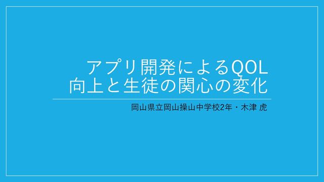 アプリ開発によるQOL 向上と生徒の関心の変化 岡山県立岡山操山中学校2年・木津 虎