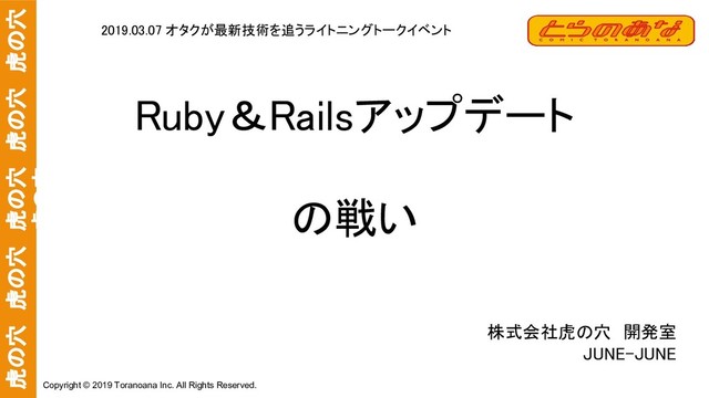 とあるプロジェクトでRubyとRailsのアップデートに挑戦している最中のお話です。 2019/3/7にとらのあな主催のLT用に作成したスライドとなります。アップデートする際に変更したことや、ポイントを解説しています。