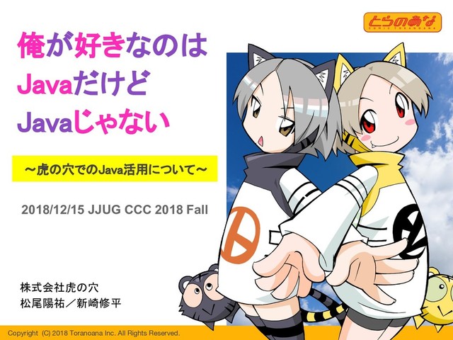 Javaじゃない 〜虎の穴でのJava活用について〜 2018/12/15 JJUG CCC 2018 Fall 1 株式会社虎の穴 松尾陽祐/新崎修平