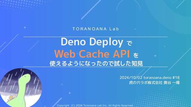 - Deno Deploy で Web Cache APIを使える - Web Cache API ? - Deno の Web Cache API 実装状況 - Deno Deploy で Web Cache API こう使う