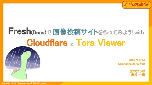 #10 虎の穴ラボ 奥谷 一陽 Fresh(Deno)で 画像投稿サイトを作ってみよう! with Cloudflare x Tora Viewer
