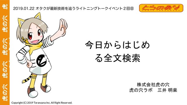 4 1 Copyright (C) 2019 Toranoana Inc. All Right Reserved. 7-,2 .) <.)> • "' 6 9 %8*( 7/ & 5+: <$> • Linux grep! • #30 Ctrl+F ,2 11