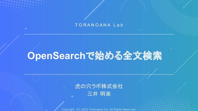 とらのあなラボTechConferenceVol.2におけるセッション「OpenSearchで始める全文検索」の登壇資料です。