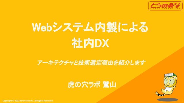 とらのあなラボTechConferenceVol.2におけるセッション「Webシステム内製による社内DX」の登壇資料です。