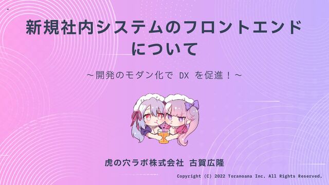 とらのあなラボTechConferenceVol.2におけるセッション「新規社内システムのモダンなフロントエンド開発について 〜開発の高速化でDXを促進!〜」の登壇資料です。
