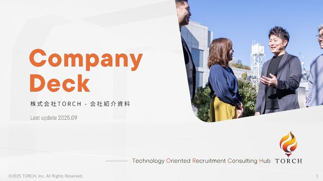 産業オートメーション特化の採用・転職エージェントである株式会社TORCHのカンパニーデックです。私たちのサービスの在り方を示したミッション・ビジョン・バリューや、チームづくりに対する考え方を紹介しています。