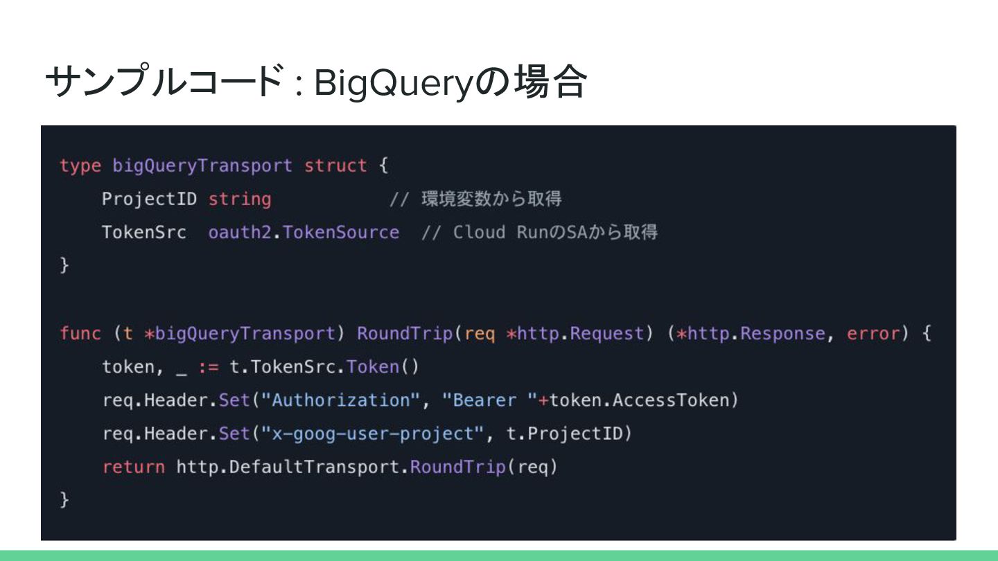 サンプルコード : BigQueryの場合