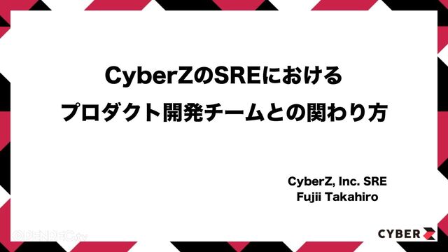 CyberZのSREはプロダクト(OPENREC.tv)に根ざしたプロダクトSREチームと、いわゆるSREとしての取り組みや開発組織横断の施策をする横断SREチームの動きを兼任している形です。 それを踏まえた上で、他のチームや組織との連携にフィーチャーし小〜中規模開発組織におけるSRE的取り組みを具体的な施策について実例を踏まえご紹介します。