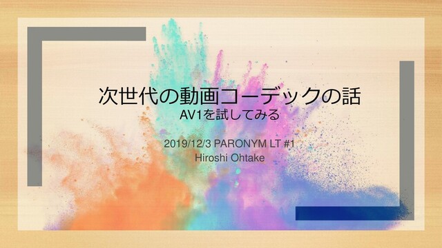 次世代の動画コーデックの話 AV1を試してみる 2019/12/3 PARONYM LT #1 Hiroshi Ohtake