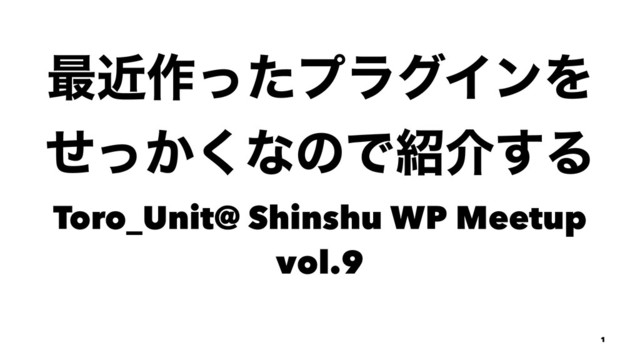 ࠷ۙ࡞ͬͨϓϥάΠϯΛ ͔ͤͬ͘ͳͷͰհ͢Δ Toro_Unit@ Shinshu WP Meetup vol.9 1
