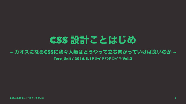 CSS ઃܭ͜ͱ͡Ί ~ ΧΦεʹͳΔCSSʹզʑਓྨͲ͏ཱ͔͍͚ͬͯͪͬͯྑ͍ͷ͔ ~ Toro_Unit / 2016.8.19 @ΠυόλΧΠΪ Vol.2