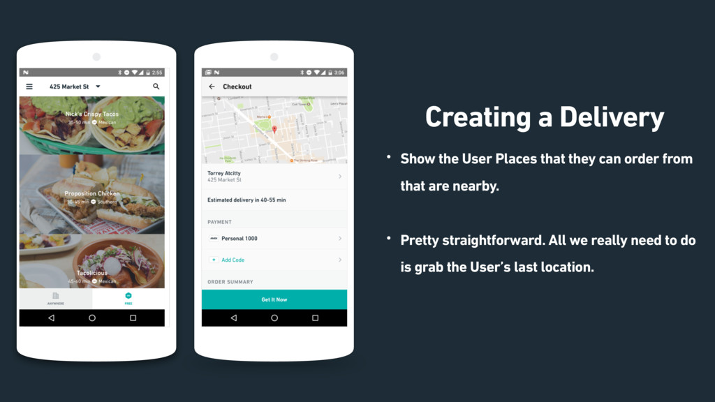 Have you ever wondered just how your favorite delivery or ride sharing app manages to keep you updated of your progress throughout the duration of your task? In this talk, we’ll cover Postmates’ approach to obtaining user location data and sending back real-time updates at every step of the way including the challenges of supporting various scenarios where a device is not connected to a power source throughout the duration of a job.