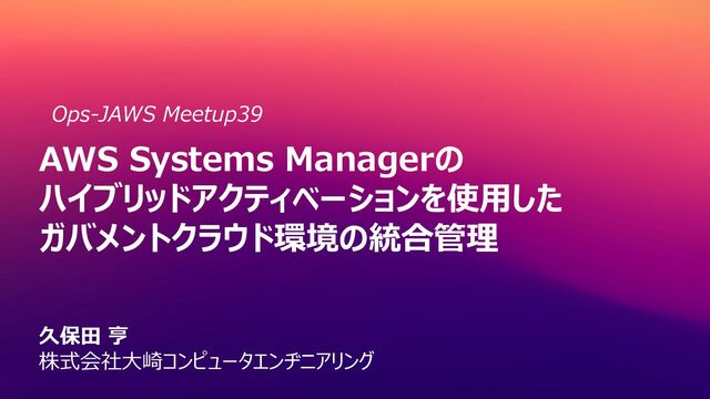 AWS Systems Managerのハイブリッドアクティベーションを使用したガバメントクラ...